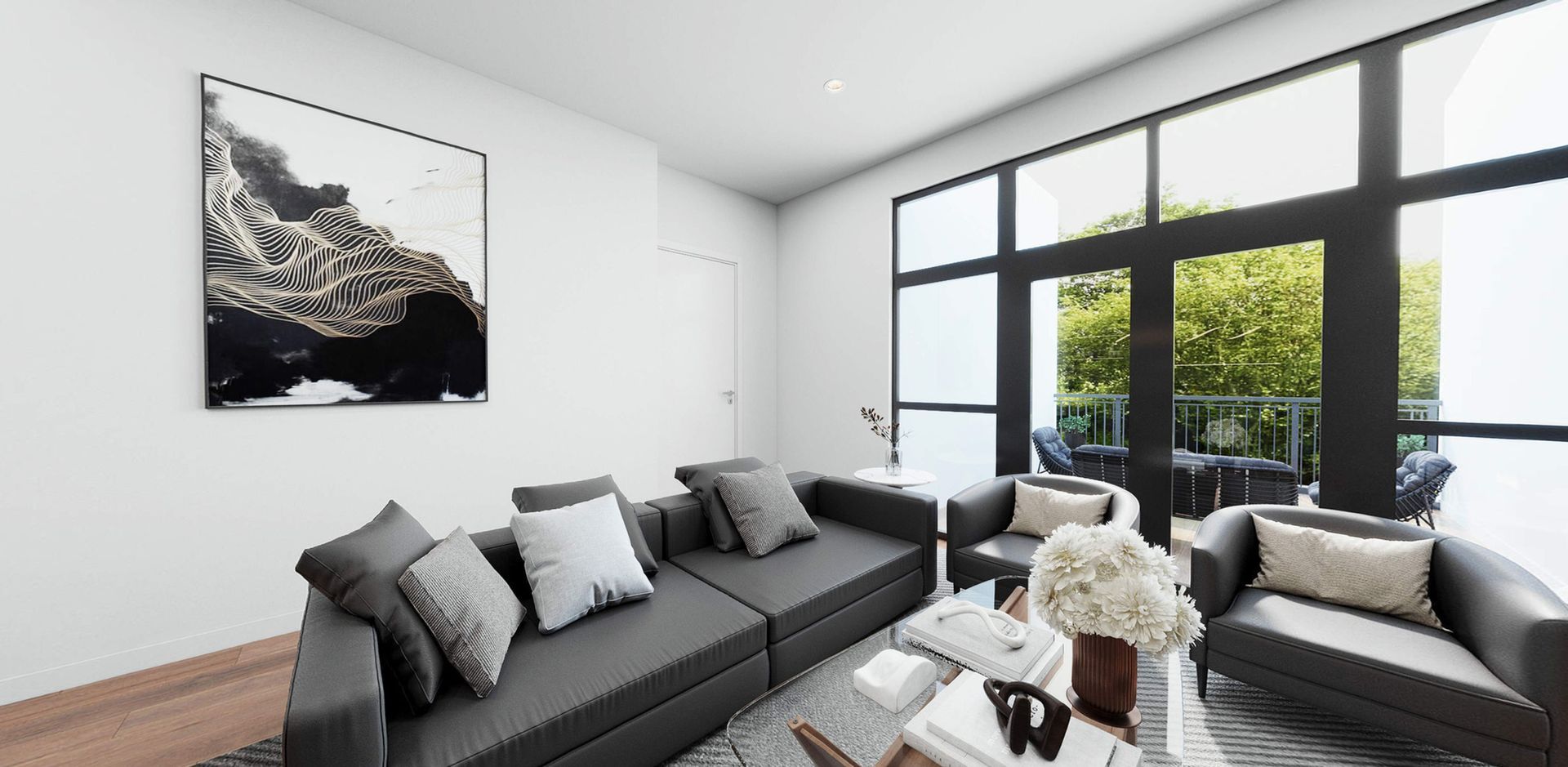 - High-End Finishes: Enjoy the best in luxury living with high ceilings, premium-grade gas appliances, and beautiful hardwood floors. The centerpiece of each unit is a stunning waterfall-edge island with designer accents, creating a kitchen that's both functional and beautiful.
